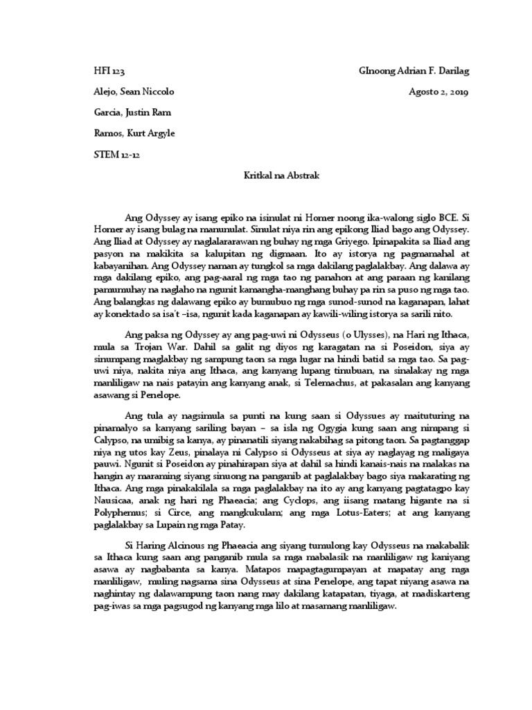 Kadalasan bahagi ng isang tesis o disertasyon na makikita sa unahan ng pananaliksik pagkatapos ng title page o pahina ng pamagat. View 1 Abstrakpdf from FIL 10 at Mapúa Institute of Technology. Halimbawa Ng Abstrak Philippin News Collections.