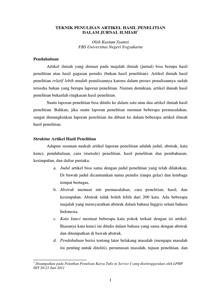 Teknik Penulisan Artikel Ilmiah Hasil Penelitian Dalam Jurnal Ilmiah Pdf