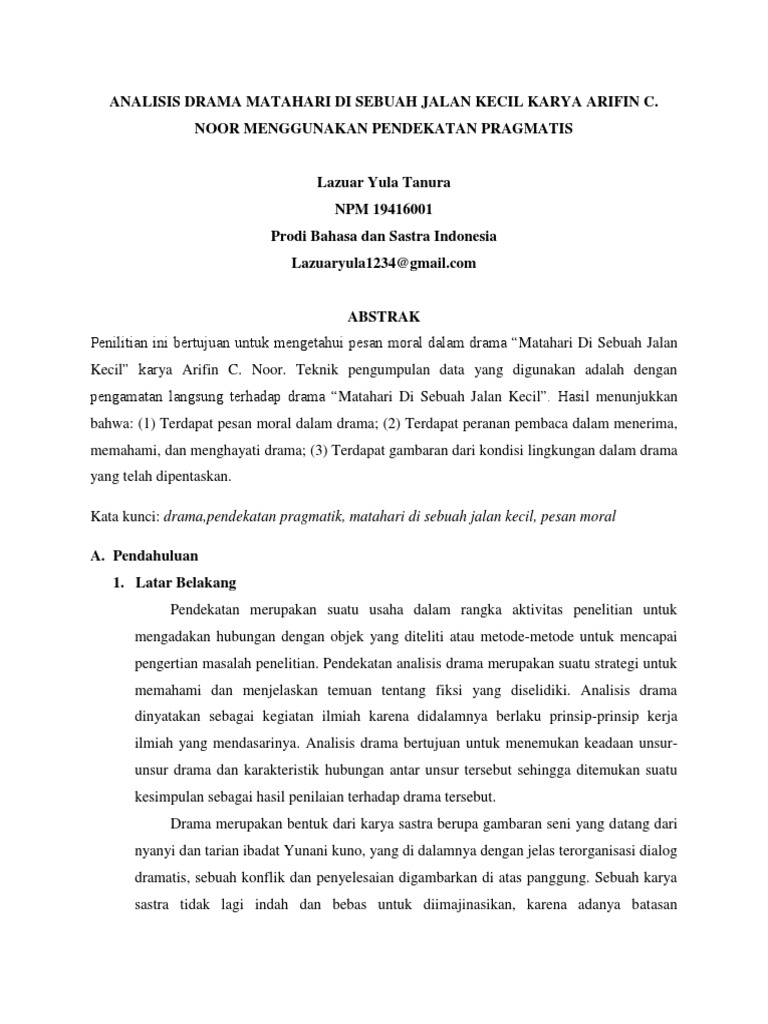 Analisis Drama Matahari Di Sebuah Jalan Kecil Karya Arifin C Pdf