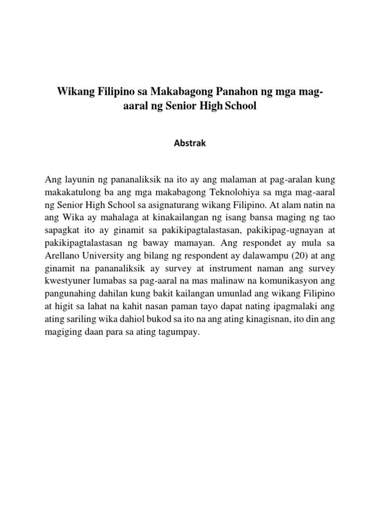 Abstrak Tungkol Sa Wikang Filipino