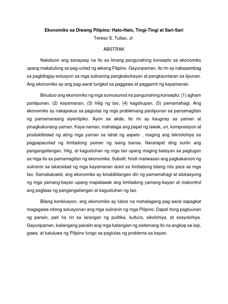 Ekonomiks Sa Diwang Pilipino Halo Halo Tingi Tingi At Sari Sari Pdf