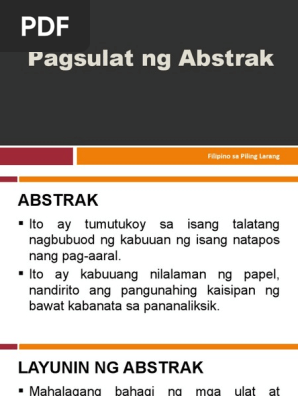 Pagsulat Ng Abstrak. PAGSULAT NG ABSTRAK Sa paksang ito ating tatalakayin kung ano nga ba ang mga palatandaan sa pagsulat ng abstrak at ang mga halimbawa nito. Abstrak docx 1 ano ang abstrak sa akademikong pagsulat.