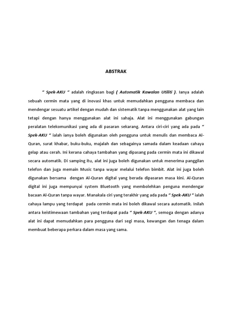 Pendahuluan Fokus Inovasi Objektif Kumpulan yang terlibat sekiranya berkumpulan 3. Ada beberapa tujuan mengapa dalam sebuah penulisan karya ilmiah harus ada abstrak didalamnya. Berikut ialah cara untuk menulis abstrak secara kesuluruhan dan kandungan abstrak mestilah mengandungi.