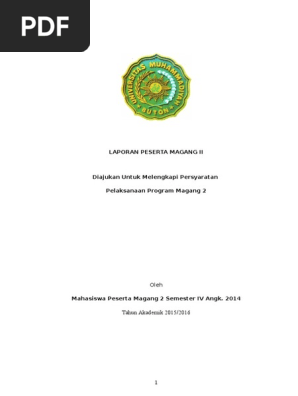Pelaksanaan dan penulisan laporan magang yang sesuai pedoman diharapkan dapat meningkatkan kualitas magang itu sendiri. Contoh Abstrak Laporan Magang Lanjut Contoh Win Cute766. LAPORAN KEGIATAN PELAKSANAAN PROGRAM MAGANG II SMP MUHAMMADIYAH 1 MALANG LAPORAN KELOMPOK Diajukan untuk Melengkapi Persyaratan Penyelesaian Program Magang Oleh IRFAN ARIF 201310080311048 FAKULTAS KEGURUAN DAN ILMU PENDIDIKAN UNIVERSITAS MUHAMMADIYAH MALANG TAHUN 2015-2016 HALAMAN PENGESAHAN Laporan Kegiatan Magang.