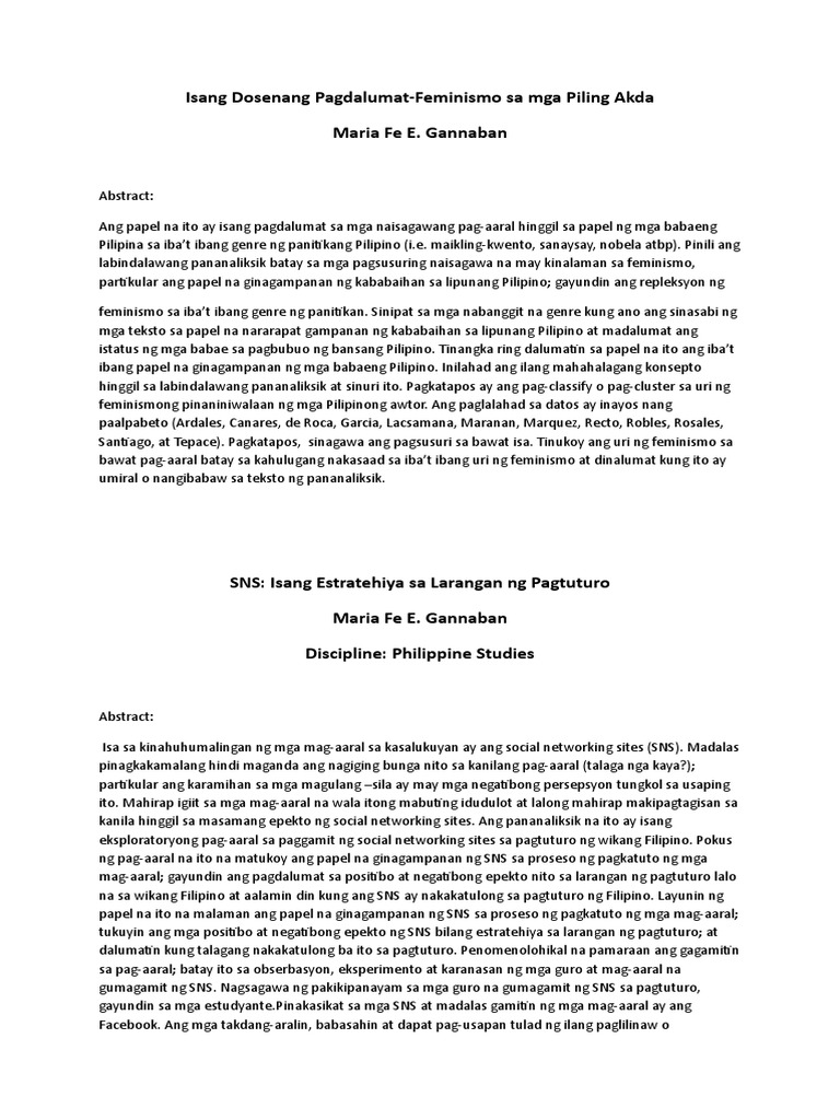 Ano Ang Kahulugan Ng Abstrak. Halimbawa Ng Abstrak Sa Pananalisk. Pinili ang labindalawang pananaliksik batay sa mga pagsusuring naisagawa na may kinalaman sa feminismo.