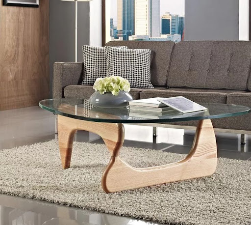 Isamu Noguchi Style Modern Wooden Coffee Table With Glass Top 249 99 Groovy Home Funky Con Modern Glass Coffee Table Coffee Table Noguchi Coffee Table