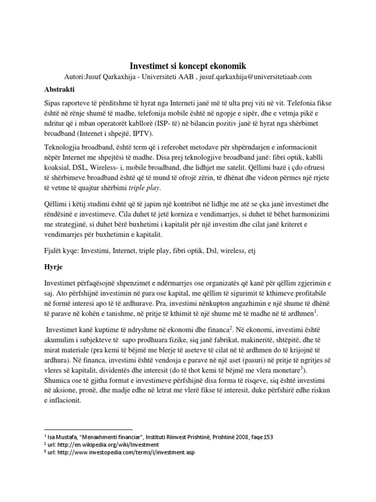 Doc Investimet Si Koncept Ekonomik Jusuf Qarkaxhija Academia Edu