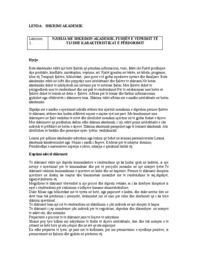 Hyrja afërsisht 1-2 faqe 2. Shkrim akademik SBarnet P. Referenca e saktë është një komponent shumë i rëndësishëm i shkrimit.