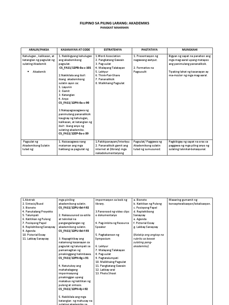 Filipino 11 Akademikong Pagsulat Abstrak Pdf