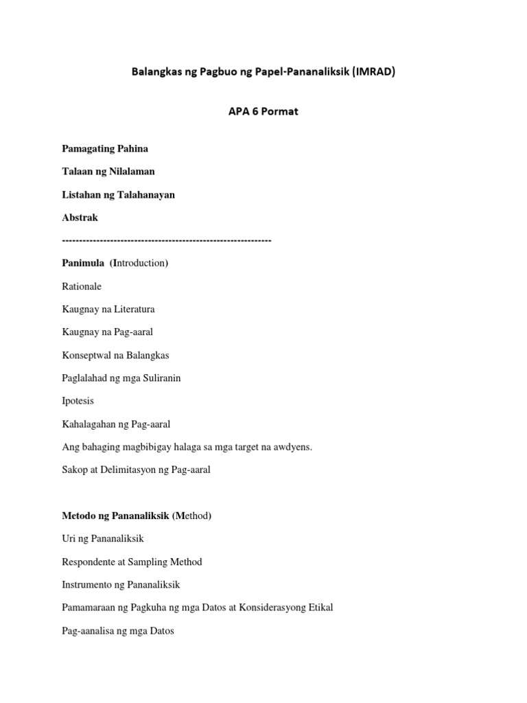 Balangkas Ng Pagbuo Ng Papel Pananaliksik Pdf